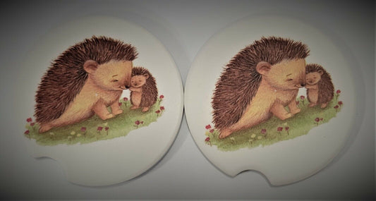 Car Costers stone, sublimated set of 2 Hedgehog designs