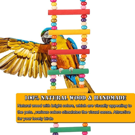 Natural Wood Pet Bird Parrot Ladders Climbing Toy Hanging Colorful Balls Decor