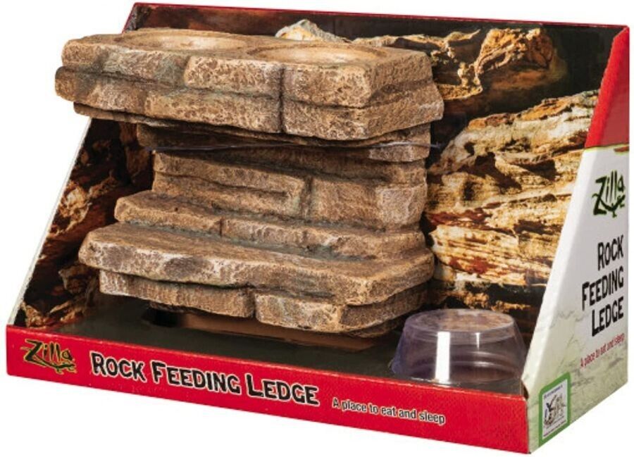 The Zilla Rock Feeding Ledge offers a place for your reptiles or amphibians to enjoy their meals in safety. This highly detailed, realistic decoration includes two reusable dishes and attaches to the terrarium wall with a powerful suction cup.