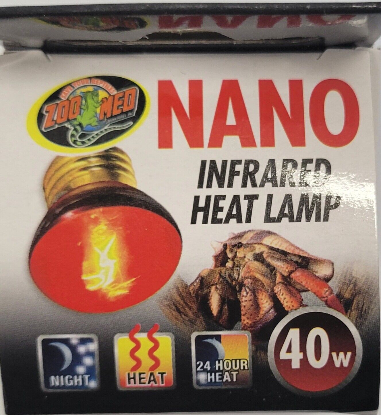 The Zoo Med Nano Infrared Heat Lamp is an ideal heat source for nighttime or 24-hour use, with very little visible light emission to promote healthy sleep patterns. The size is ideal for small geckos, hatchling reptiles, amphibians, or invertebrates (arachnids or tarantulas).